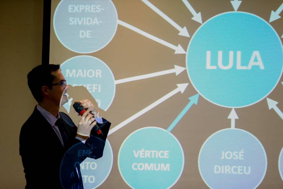 ativa de criminalização do próprio mandato" dele, ao colocá-lo como "comandante máximo" de um mega esquema de corrupção. No entanto, ressalta ela, ofereceram denúncias contra apenas três supostos crimes: a entrega e a reforma de um triplex no Guarujá por parte da construtora OAS; o pagamento, pela mesma construtora, do transporte de bens que ele recebeu quando presidente; e de palestras feitas por ele, cujos pagamentos, de acordo com os procuradores, têm indícios de propinas.